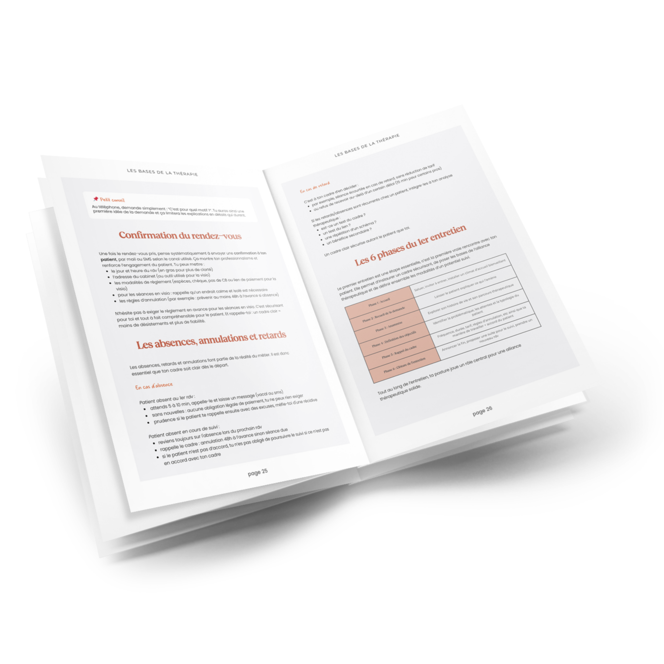 Vous maitriserez la trame du 1er entretien, les objectifs, la fréquence de suivi, les annulations et absences, la fin du suivi…